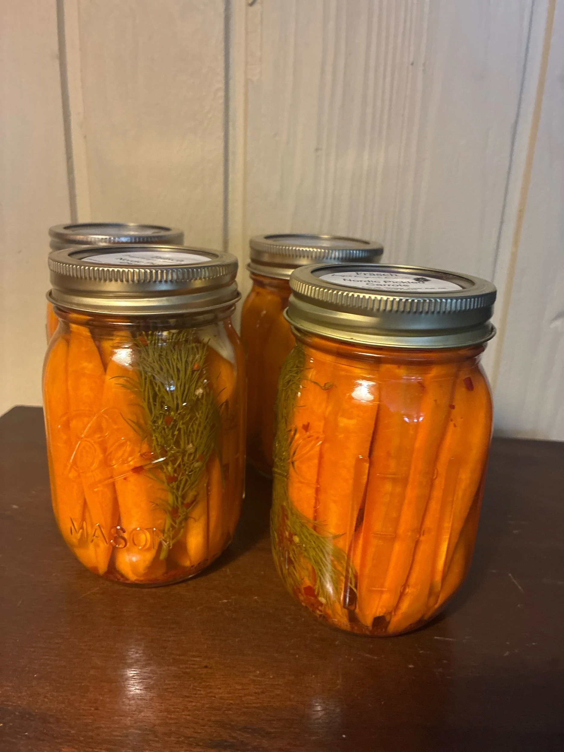 Shop › Nordic Pickled Carrots Image 1 of 2 Image 2 of 2 Nordic Pickled Carrots $8.00 Pickled carrots infused with dill, garlic and a hint of spice! Add To Cart Added! Pickled carrots infused with dill, garlic and a hint of spice!
